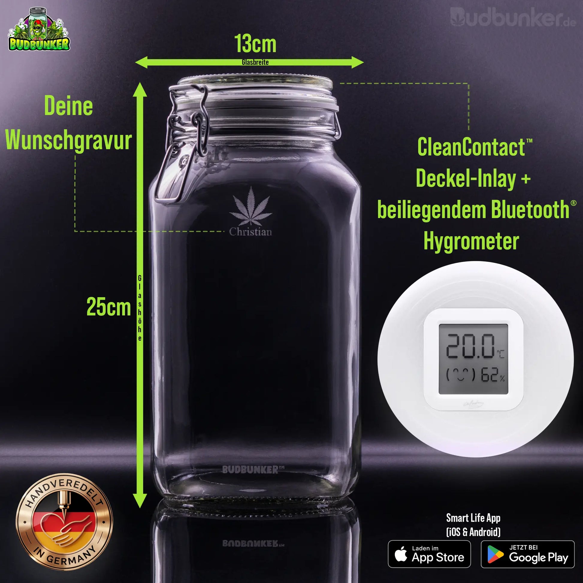 BudBunker Big Daddy Vorratsglas + Bluetooth-Hygrometer